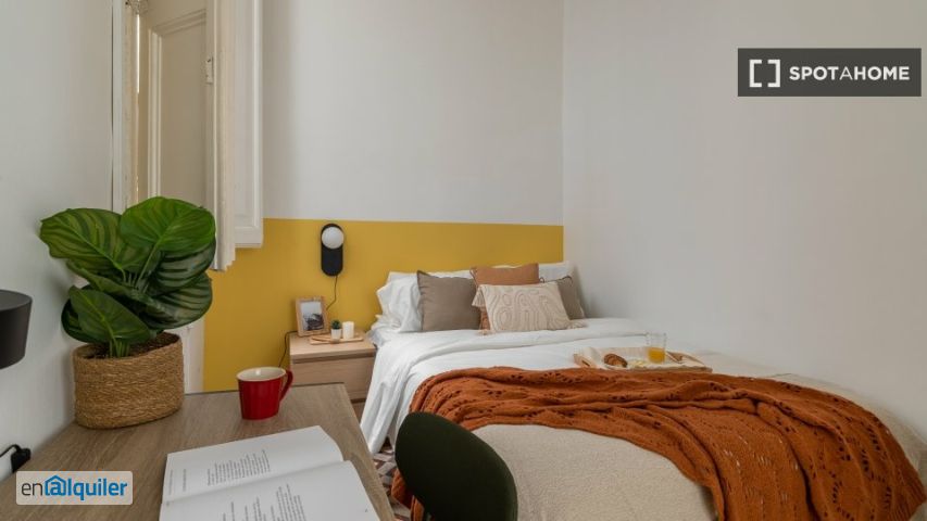 Se alquilan habitaciones en piso amueblado de 6 habitaciones en la calle Ample. La vivienda se encuentra en la 1ª planta de un edificio sin ascensor. La vivienda incluye cocina equipada y lavadora.