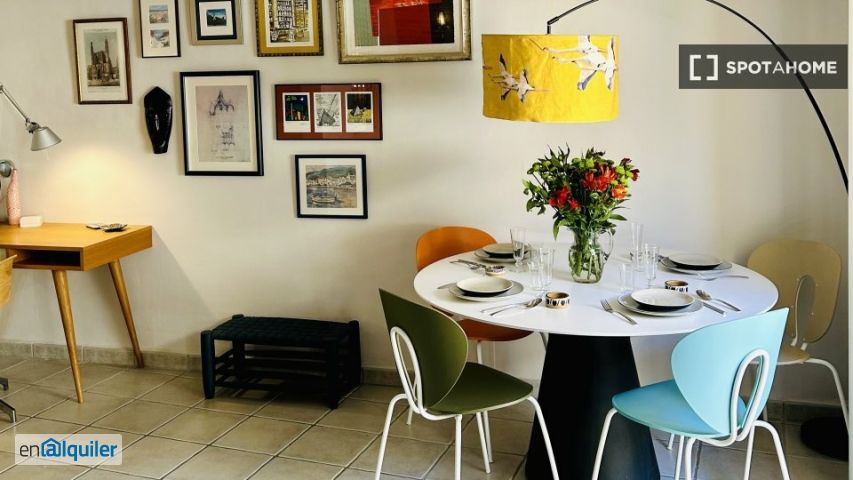 Se alquila monoambiente amueblado en la c de Petritxol. La propiedad está en el 4To piso de un edificio sin ascensor. La propiedad incluye aire acondicionado, azotea, lavavajillas y balcón.