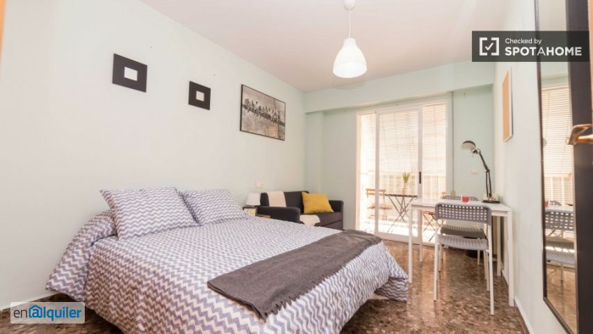 Este piso de 5 habitaciones abarca una superficie de 130 m² y dispone de habitaciones espaciosas totalmente amuebladas en alquiler. La cocina tiene electrodomésticos modernos y 1 mesa de comedor, y se abre a 1 pequeño y precioso balcón. Todas las habitaciones son luminosas y cuentan con muebles elegantes. Camins al Grau es el sitio perfecto si quieres estar cerca de la playa sin tener que vivir justo en el Cabanyal. En el barrio encontrarás muchas tiendas, cafeterías y 1 gran centro comercial, así como los preciosos Jardines del Río Turia.