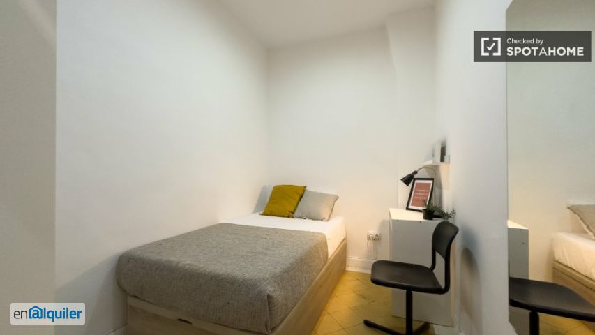 Esta habitación en un piso compartido de 5 habitaciones, ubicado en el vibrante barrio del Raval de Barcelona, está completamente amueblada y equipada con las comodidades esenciales para una experiencia de vida cómoda. El apartamento es exterior y está amueblado, incluye wifi, lavadora privada y cocina equipada. El propietario admite profesionales y estudiantes. No se permite fumar ni se admiten mascotas, y no hay aire acondicionado ni secadora disponibles. Tampoco se admiten parejas ni familias. Spotahome ha revisado minuciosamente la propiedad, verificando todos los detalles para que elijas el espacio que prefieras. El Raval es conocido por su encanto ecléctico y su vibrante cultura, y está cerca de varias atracciones turísticas. A poca distancia, puedes explorar Studio 54, el Muro de las Grafitis y las famosas Ramblas. Otros puntos de interés cercanos incluyen el Cubo de Poblesec, el Abeurador del Poble Sec y el Teatro Tantarantana. Esto hace que la zona sea ideal para disfrutar del ambiente artístico y animado de Barcelona. ¡descubre tu futuro hogar en el Raval con Spotahome hoy mismo!