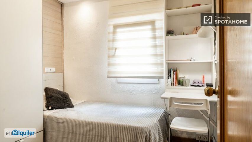 Esta habitación completamente amueblada en un piso compartido de 4 habitaciones en Opañel está disponible exclusivamente para mujeres. El piso cuenta con cocina equipada, calefacción y agua a gas natural, lavadora y tv. También incluye un bonito balcón para relajarse. Spotahome ha verificado personalmente esta propiedad para garantizar que coincida con su descripción. Opañel es un barrio animado de Madrid. Cerca del piso, encontrará numerosos restaurantes como el Arrecife, el Restaurante Mesón la Andaluza y el Bar Centroamérica, que ofrecen una gran variedad gastronómica. Además, el Supermercado Ahorramas está cerca para ir de compras cómodamente, y el Montaje Cúbico de Museos enriquece el ambiente cultural de la zona.