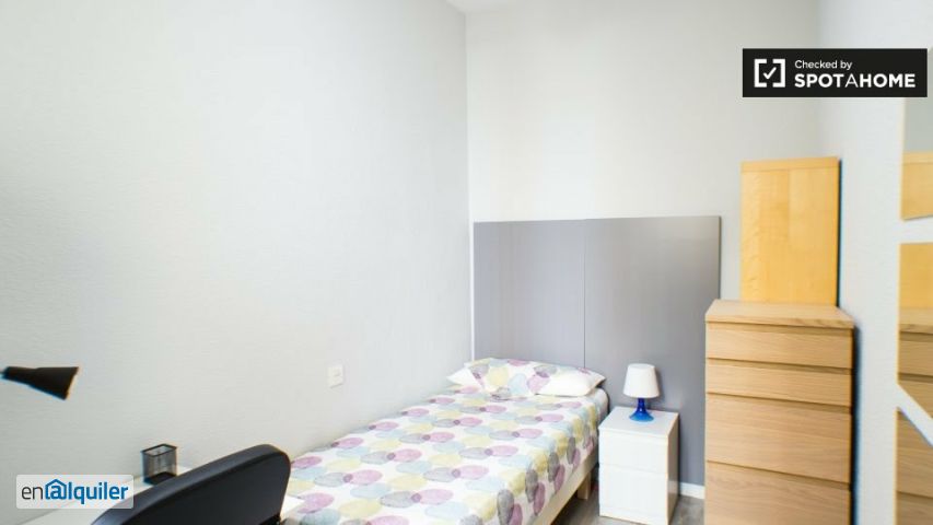 Esta habitación en un piso compartido de 6 habitaciones en Almagro, Madrid, está disponible para alquilar. El apartamento está completamente amueblado, con tv y cocina equipada. La calefacción y el agua funcionan con gas natural. El apartamento incluye lavadora de uso privado, ascensor y servicio de portería. Existen restricciones, ya que el propietario prefiere alquilar solo a estudiantes, lo que lo convierte en una opción ideal para quienes buscan estudiar. Ubicado en el barrio de Almagro, el apartamento ofrece fácil acceso a diversos servicios y lugares de interés. A poca distancia, encontrará varios restaurantes, como Cervecería Mari-Mer Comida Rápida y Las Tortillas de Gabino. Lugares de interés cultural como el Palacio Bermejillo y el Monumento a Emilio Castelar también están cerca, lo que enriquece la experiencia de vida. ¡elija este alojamiento cómodo y apto para estudiantes con Spotahome!