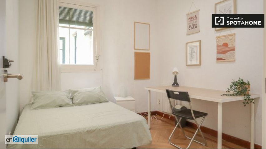 Amplio piso en edificio señorial en pleno corazón comercial del Barrio de Salamanca. Ambiente joven con estudiantes responsables de todo el mundo. Cocina totalmente equipada, comedor y dos baños completos. La vivienda se encuentra en la 2ª planta de un edificio con ascensor. Comercios, cafeterías, restaurantes en la zona. Metro a tres minutos andando con línea roja y marrón, y la línea circular (gris) a diez minutos. Múltiples autobuses al centro. Parque del Retiro a cuatro manzanas.