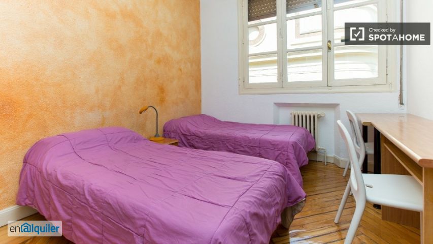 Un piso grande de 9 habitaciones con una mezcla de habitaciones individuales y dobles en alquiler en el mismo centro de Madrid. Este piso de 220 m² con ascensor en la 3ª planta es para gente que quiera vivir con todo a la puerta de casa. Te resultará muy difícil aburrirte si vives aquí, con increíbles zonas comerciales y vida nocturna en todas las direcciones.