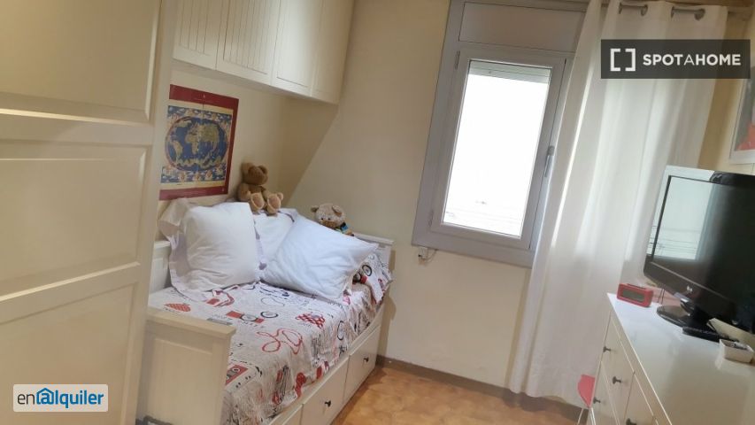 Se alquilan habitaciones en piso amueblado de 4 dormitorios en Av. De Roma. La propiedad está en el 1Er piso de un edificio con ascensor. La propiedad incluye cocina equipada, lavadora, lavavajillas y secadora.