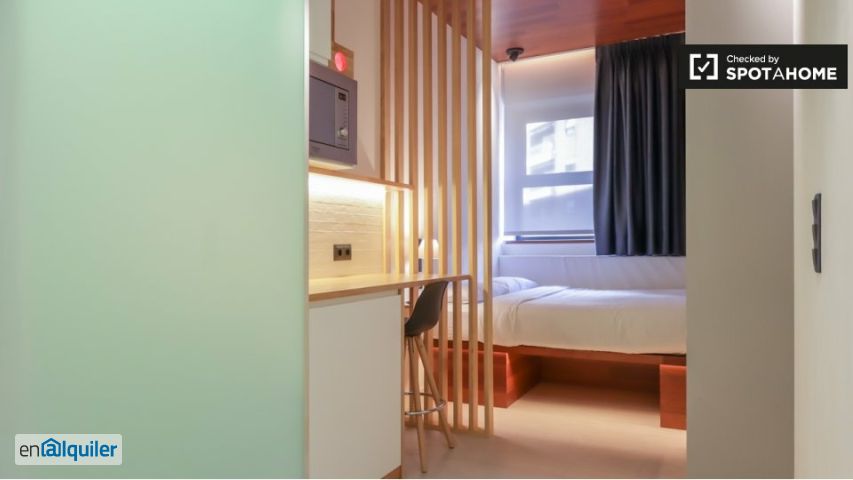 Se alquila monoambiente amueblado en c. De las Mercedes. La vivienda se encuentra en la planta sótano del edificio. La propiedad incluye aire acondicionado y lavadora privada. El edificio incluye áreas comunes como una cocina con horno, una terraza y una recepción. Importante: - Esta propiedad es una de un conjunto. Esto significa que hay otras unidades casi idénticas en el edificio. Por lo tanto, lo que ve arriba puede ser ligeramente diferente a lo que realmente alquila.
