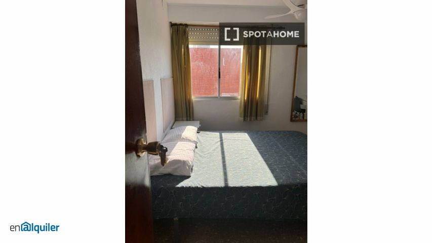 Este apartamento compartido de 4 habitaciones se encuentra en la Creu del Grau, Valencia. Está completamente amueblado y cuenta con aire acondicionado individual, calefacción de gas natural y balcón exterior. Incluye ascensor y lavadora común, además de servicios de limpieza y facturas incluidas (luz, wifi, agua y gas). Se permite fumar, pero no se admiten mascotas. Si eres profesional, estudiante o Erasmus, Spotahome ha revisado y verificado personalmente esta propiedad, lo que garantiza su calidad y fiabilidad. La Creu del Grau es un barrio repleto de servicios y atracciones. En las inmediaciones, encontrarás una variedad de restaurantes como Punto Sabroso, Bar Restaurante Que bo Que Esta y Ana iii, que ofrecen cocina latinoamericana, mediterránea y otras delicias. Si te interesan los lugares de interés locales, el Parotet es fácilmente accesible. Reserva ya tu alojamiento ideal en este barrio de Valencia, con una excelente comunicación.