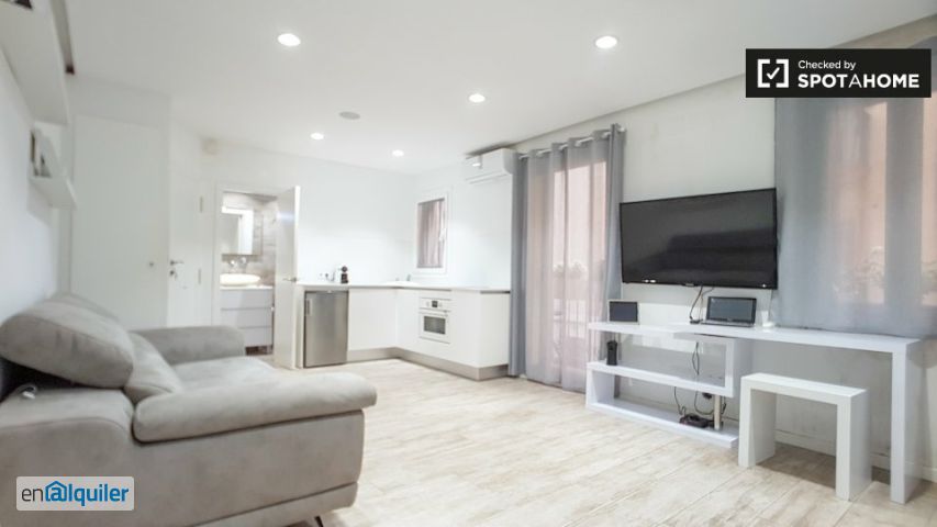 Descubra este estudio exterior totalmente amueblado disponible para alquilar en la Barceloneta, Barcelona. El estudio cuenta con aire acondicionado individual (calefacción y refrigeración) y lavadora de uso privado. Disfrute de un ambiente relajante en su balcón o terraza mientras contempla el entorno. Se permite fumar y la propiedad es ideal para profesionales, estudiantes y Erasmus. Además, el alquiler incluye todos los gastos, incluyendo electricidad, agua, gas y wifi. Spotahome ha revisado personalmente esta propiedad. Ubicado en el corazón de la vibrante Barceloneta, esta zona ofrece numerosas atracciones como la Escultura Balanza Romana, el festival "que Faire à Barcelone" y las playas de Barcelona para su disfrute. Experimente el encanto de este emblemático barrio mientras disfruta de la comodidad y conveniencia de su nuevo hogar.