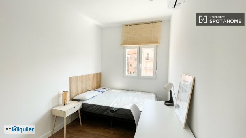 Spotahome presenta una habitación en un piso compartido de 8 habitaciones situado en Vista Alegre, Madrid. El apartamento cuenta con aire acondicionado individual para mayor comodidad y una cocina equipada con electrodomésticos como lavadora, secadora y lavavajillas. Los inquilinos apreciarán la orientación exterior y el acceso a un balcón o terraza privados. Se prohíbe fumar y se admiten mascotas. La habitación es ideal para profesionales, estudiantes o estudiantes Erasmus. La ubicación del apartamento en Vista Alegre ofrece un cómodo acceso a servicios y atracciones esenciales. La estación de metro de Carabanchel está cerca, lo que garantiza una conexión de transporte fluida. Además, encontrará restaurantes locales como Mcdonald's y Little Caesars Pizza. Para su ocio, lugares emblemáticos como el Monumento a Antonio Bienvenida se encuentran a poca distancia a pie. Reserve su visita hoy mismo a través de Spotahome.
