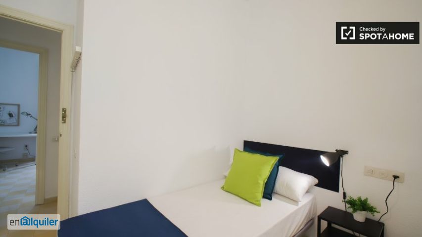 El Retreaet Russafa _porque este es el lugar para estar. _ ¿me gustará aquí? Sip. Nosotros consideramos ¿buscas vivir con otros jóvenes en una propiedad compartida y explorar la ciudad juntos? Entonces este apartamento de 5 dormitorios en la súper trendy Russafa no podría ser mejor. ¿de Verdad? Dime más te van a encantar todos los balcones. Perfecto para una bocanada de aire fresco o un poco de gente descarada mirando. Magníficas vistas sobre la calle, viendo toda la acción abajo. Creemos que esta propiedad se adapta a los estudiantes o profesionales que les gusta estar cerca de otros. Prepare una tormenta con sus compañeros de piso o eche un vistazo a los restaurantes y bares locales. Las cosas son definitivamente más divertidas con los amigos. Sus 3 razones principales para vivir aquí: - Las habitaciones son luminosas y modernas sin excepción. - en las inmediaciones encontrará la estación de tren València Nord, que hace que viajar por España sea rápido y sencillo. - Una lavadora significa lavar la ropa es muy fácil. Pero necesitas saber esto - Solo 1 baño entre 5 habitaciones no es lo ideal. Dibujar un rota? Su casa-verificador, Denis, dijo: "esta propiedad se encuentra en una buena ubicación entre Ruzafa y el centro de la ciudad. Es 90% exterior, con balcones en tres de las habitaciones, con vistas a una bonita calle ". _ Ayúdame a decidirme Este es un apartamento de 3 dormitorios en la 3ª planta, en la Avinguda Regne de Valencia, en el centro de Valencia. Tiene una cocina totalmente equipada, un baño y cinco dormitorios, tres de los cuales tienen balcones. Es perfecto para los jóvenes que desean compartir con otros y hacer nuevos amigos en la ciudad. Con cinco compañeros de piso alrededor, siempre tendrás a alguien con quien pasar el rato y charlar.