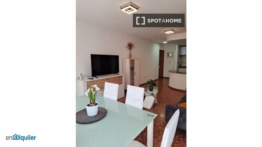 Descubra este apartamento de 2 dormitorios completamente amueblado en Benimámet, Valencia. Esta propiedad está equipada con aire acondicionado y calefacción individuales, lo que garantiza su comodidad durante todo el año. La cocina está totalmente equipada, incluyendo lavadora y secadora privadas para mayor comodidad. Disfrute de acceso a ascensor y aparcamiento mientras reside en un entorno libre de humo y mascotas. Además, todos los gastos de electricidad, agua, gas y wifi están incluidos en el precio del alquiler. Tenga la seguridad de que esta propiedad ha sido verificada personalmente por Spotahome para garantizar su calidad y precisión. Benimámet ofrece un estilo de vida vibrante y bien conectado. La estación de metro Les Carolines está convenientemente cerca para facilitar sus desplazamientos. En las inmediaciones, podrá explorar una variedad de opciones gastronómicas, como el Bar Las Palmeras, el Restaurante Cafetería Essentía y el Bar Parsa Kebab Pizzeria. Para disfrutar de experiencias culturales, descubra los Murales de Arte Urbano y la Feria del Automóvil, atracciones turísticas de renombre en la zona. Además, la Escultura Homenaje Memorial Víctimas del Covid aporta un toque de distinción a la región. Benimámet ofrece una combinación excepcional de accesibilidad y comodidades para una experiencia de vida agradable.