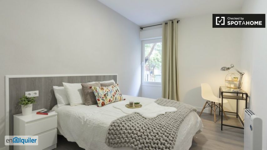 El ingenioso y social _porque quiero un espacio elegante para hacer nuevos amigos_ ¿me gustará aquí? Sería difícil no hacerlo. ¿busca una casa moderna que nunca lo dejará sintiéndose solo? Lo has encontrado y está en una ubicación súper moderna. ¿de Verdad? Dime más te encantará la moderna sala de estar. Es un espacio limpio y mínimo con una combinación de colores gris y blanco. Póngase cómodo en el sofá para una noche de cine o disfrute de una cena con sus compañeros de piso en la mesa. Creemos que es ideal para personas amantes de la diversión que buscan un hogar vibrante. Puedes ir a espectáculos en los Teatros del Canal, o correr por el Parque de Santander. Además, ¡la Universidad Politécnica está a 20 minutos a pie! Sus 3 razones principales para vivir aquí: - Las áreas comunes son elegantes y súper modernas. - Cada habitación tiene un escritorio, almacenamiento y una llave independiente. - Estás en una ubicación moderna cerca de la Universidad Politécnica. Pero necesitas saber esto - Hay 9 habitaciones en este apartamento, ¡prepárate para comenzar a aprender muchos nombres nuevos! - no hay a c instalado aquí, es hora de abrir algunas ventanas. Ayúdame a decidir Este es un moderno apartamento en planta baja de 9 dormitorios en la calle de Galileo, Madrid. Cuenta con una sala de estar y cocina contemporáneas, además de habitaciones dobles súper bien equipadas. Esta propiedad es ideal para socialites amantes de la diversión que buscan el equilibrio perfecto entre trabajo y juego. Estás bien conectado con el centro de la ciudad y las universidades locales, y te encantarán los restaurantes y bares de moda cercanos.