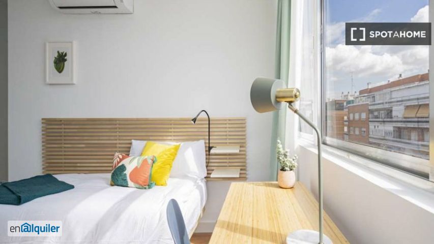 Descubre una acogedora habitación en un piso compartido de 12 habitaciones en Berruguete, Madrid. La propiedad está completamente amueblada e incluye comodidades como cocina equipada con lavavajillas y horno, lavadora y tv. Todos los suministros (agua, electricidad, gas y wifi) están incluidos, y se ofrece limpieza periódica. Verificado por Spotahome, garantiza un alojamiento de confianza y calidad. Ideal para profesionales, estudiantes y estudiantes Erasmus. No se admiten mascotas ni fumar. Situado en el vibrante barrio de Berruguete, el alojamiento está cerca de importantes atracciones y servicios. Restaurantes como Sabores Criollos Buffet y Pizza Hut están a poca distancia, además de atracciones turísticas como el Castaño de Lomito y la Plaza del Poeta Leopoldo de Luis. ¡explora el encanto de Berruguete y haz de este tu próximo hogar con Spotahome!