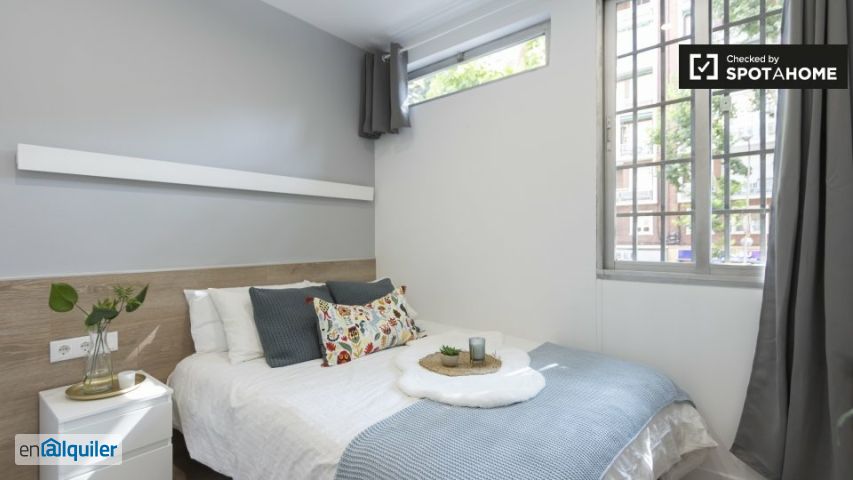 Lo encantador en Delicias _porque soy una socialité sofisticada_ ¿me gustará aquí? Sería difícil no hacerlo. ¿el minimalismo moderno ocupa un lugar destacado en su lista de elementos esenciales? Obtenga un estilo social con un lugar en este gran apartamento de 8 habitaciones. ¿de Verdad? Dime más… te encantará la decoración fresca y moderna. Las elegantes paredes de madera se destacan gracias a una paleta de colores neutros. Y, solo mira la iluminación colgante sobre la gran mesa de comedor. Este definitivamente tiene el aspecto. Creemos que este apartamento es ideal para un intrépido explorador que busca un lugar moderno y céntrico. ¡delicias tiene algo para todos! Explore el cercano Matadero Madrid, o si ese no es su estilo, camine hasta el popular Planetario. Sus 3 razones principales para alquilar aquí: - Ponte al día con tus compañeros de piso alrededor de la mesa del comedor. - Esa cocina moderna de estilo galera es otra cosa. - Viaje al centro de la ciudad en unos 30 minutos. Pero necesitas saber esto - Solo hay 2 baños compartidos. Acceda rápidamente a la ducha. Su inspector de viviendas, Marcos, dijo: _ “me encantó esta propiedad. Es moderno, espacioso y en una ubicación central. Tienes algunas atracciones turísticas cercanas y muchas tiendas también ". _ Ayúdame a decidir Este es un moderno apartamento de 8 dormitorios en el primer piso en el Paseo de las Delicias, Madrid. Cuenta con una combinación de colores nítidos, un amplio comedor y una cocina muy moderna de estilo galera. Esta propiedad es ideal para un explorador en solitario. Estarás en un barrio tranquilo, con lugares emblemáticos como Matadero Madrid cerca. Y también encontrarás muchas tiendas y restaurantes.