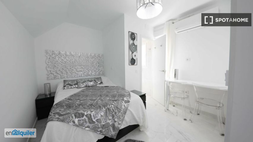 Habitación Doble Privada en Puerta del Ángel ¡descubre tu nuevo hogar en el encantador barrio de Puerta del Ángel! Esta habitación doble privada es perfecta para estudiantes y profesionales que buscan comodidad y tranquilidad. Equipado con una cama doble, aire acondicionado y baño privado, este espacio te ofrece todo lo que necesitas para una estancia confortable. Además, tendrás acceso exclusivo a una nevera y un microondas, ideales para tus necesidades diarias. El edificio cuenta con 16 habitaciones privadas distribuidas en 3 plantas. Las zonas comunes, como la cocina totalmente equipada y las áreas de descanso, son compartidas con otros inquilinos, creando un ambiente amigable y multicultural. La conexión a internet está; incluido, lo que facilita tus estudios o trabajo remoto. Situado a solo 20 minutos del centro de la ciudad, esta ubicación te permite disfrutar de lo mejor de Madrid sin renunciar a la tranquilidad. El check-in se realiza en el apartamento y el check-out incluye una tasa de limpieza descontada del depósito. No se permiten mascotas ni fumar dentro del inmueble. Para reservar, se requieren documentos como dni Pasaporte, declaración de la Renta (para autónomos), carta de aceptación de la universidad escuela acuerdo de pasantía (para estudiantes), entre otros. Los métodos de pago aceptados son transferencia bancaria, tarjeta de crédito, Paypal y efectivo. El uso de la lavadora y secadora tiene un coste de 5€. Cada uno y la limpieza de las zonas comunes es obligatoria por una importación de 60€ mensuales. â¡¡no pierdas la oportunidad de vivir en un lugar que combina comodidad, accesibilidad y un ambiente acogedor! Contáctanos para más información y para agendar una visita.