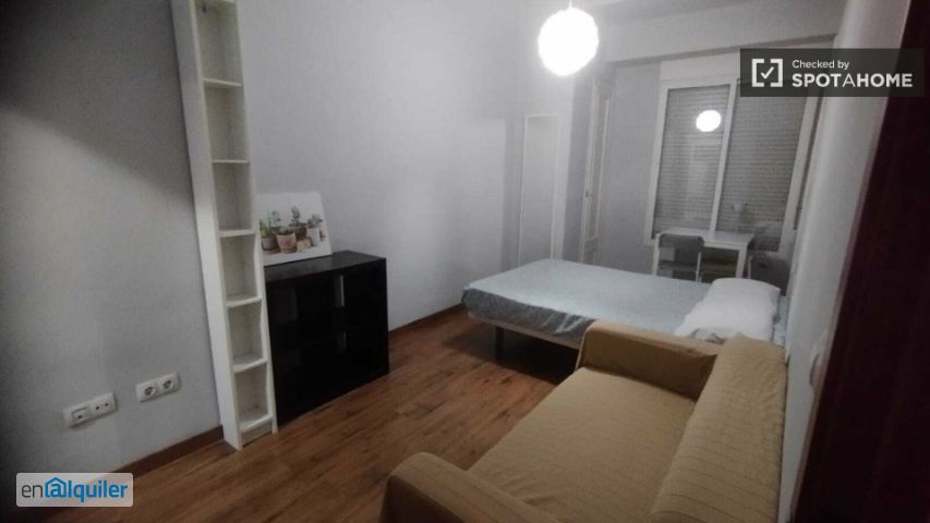 Un espacioso apartamento de 180 metros cuadrados de ocho habitaciones, que ofrece dos baños compartidos y una sala común con una cocina moderna, la lavadora y una mesa de comedor. Hay ocho habitaciones disponibles para alquilar por separado, con diferentes opciones para adaptarse a todas las necesidades, incluyendo habitaciones individuales y dobles, interiores y exteriores, y dos con su propio cuarto de baño. Este apartamento exterior está situado en la calle Garrigues, en el centro de la ciudad de Valencia, muy cerca de las redes de metro, autobús y tren. Un paseo de quince minutos le llevará a el Carmen, el centro histórico de Valencia impresionante.