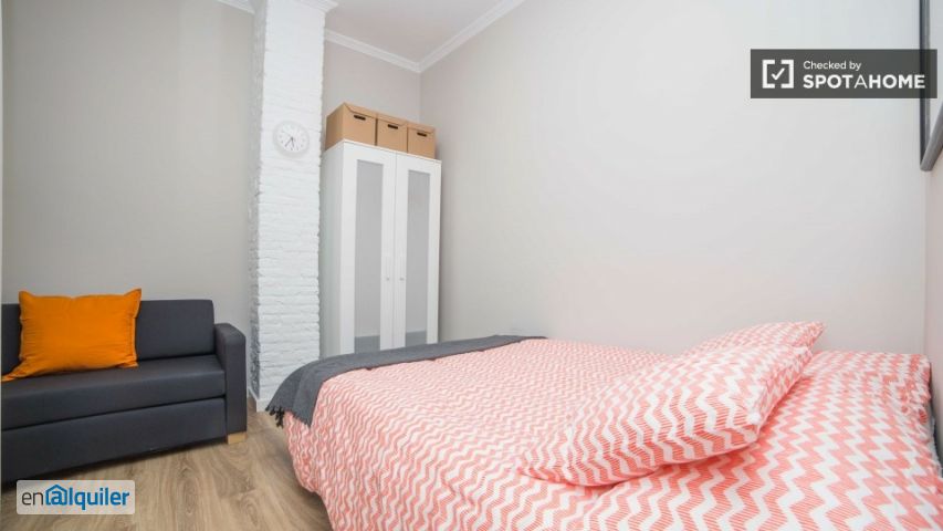 Habitaciones en alquiler en un piso renovado de 4 habitaciones con 1 terraza situado en el barrio de l'eixample, en el corazón de Valencia. El piso está muy cerca del Jardí del Túria, un pintoresco refugio para cuando los inquilinos quieran escapar del ajetreado estilo de vida de la ciudad durante unas horas. La propiedad ha sido recientemente renovada y por lo tanto está equipada con muebles limpios y modernos. Las zonas de la sala de estar y la cocina se combinan en 1 sola habitación, y la cocina está totalmente equipada con electrodomésticos modernos. La Universidad de Valencia está a 17 minutos de la propiedad, así que las habitaciones son ideales para estudiantes.