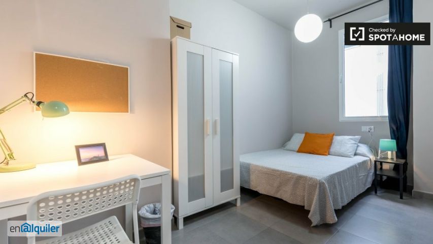 Hay habitaciones disponibles para alquilar en este apartamento de 5 dormitorios en Carrer de Sueca, en l'eixample. Este establecimiento ofrece una cocina totalmente equipada y una sala de estar abierta con mesa de comedor. Cada una de las habitaciones ofrece una cama doble, y hay 2 baños disponibles, uno de los cuales tiene baño privado. Este establecimiento se encuentra en la zona de l'eixample, a solo 20 minutos a pie del centro de la ciudad. A solo 5 minutos a pie de este establecimiento, se encuentra el Mercat de Colón, un mercado que vende una variedad de productos frescos, carne, mariscos y pastas. También hay una variedad de tiendas cercanas, incluyendo un supermercado al otro lado de la calle.