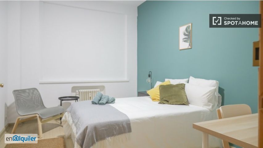 Se alquilan habitaciones en piso amueblado de 11 habitaciones en Pl. De España. La propiedad se encuentra en la 2ª planta de un edificio con ascensor. La propiedad incluye balcón y aire acondicionado. La casa cuenta con 3 baños para compartir (más un baño privado).