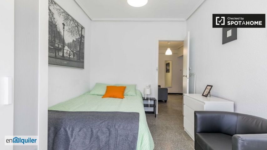 La socialité bañada por el sol _porque quiero nuevos amigos bajo el sol de Valencia_ ¿me gustará aquí? Eso depende. ¿estás buscando un lugar acogedor para descansar cerca de uno de los monumentos más reconocibles de Valencia? Estás de suerte, este podría ser el adecuado para ti. ¿de Verdad? Dime más te encantará la cocina. Está totalmente equipado y listo para un banquete. ¿estarás a la altura de la tarea? Póngase su delantal favorito e impresione a todos con sus extraordinarias habilidades culinarias. Creemos que es ideal para los entusiastas de la ciencia. Echa un vistazo a Ciudad de las Artes y las Ciencias. Este gigantesco complejo de vanguardia es el lugar perfecto para cualquier persona con sed de conocimiento. Sus 3 razones principales para vivir aquí: - la cocina está llamando a un maestro de cocina. - Las habitaciones son amplias y luminosas. - Ciudad de las Artes y las Ciencias se encuentra a 15 minutos a pie. Pero necesitas saber esto - no hay aire acondicionado ni calefacción: tiempo para invertir en un ventilador y un par de calcetines de lana. - el balcón solo es accesible a través de los dormitorios 1 y 2. Y esto - Estudiantes de 18-30 años solamente, lo siento! - se permite fumar pero solo en el balcón - mejor compártelos con sus compañeros de piso en los dormitorios 1 y 2. Su casa-verificador, José, dijo: _ "me encantó esta propiedad. Es un apartamento enorme en un barrio muy bonito. Estarás cerca de parques, museos, restaurantes y tiendas ". _ Ayúdame a decidirme Este es un encantador piso 8, con 6 dormitorios en la avenida de Peris i Valero, Valencia. Cuenta con una cocina pulcra, una decoración encantadora y Ciudad de las Artes y las Ciencias está a un corto paseo. Creemos que este apartamento es perfecto para los estudiantes que salen. Con Ciudad de las Artes y las Ciencias cerca y la vibrante Ruzafa a poca distancia a pie, en l'eixample siempre tendrás algo que hacer.