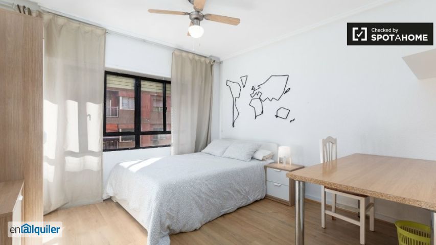 Hay habitaciones para alquilar en este elegante apartamento de 69 m² con 3 dormitorios y 1 baño en la calle d'almàssera en Jesús. El baño tiene un inodoro con ducha y lavabo en la misma habitación, mientras que la cocina está igualmente bien equipada con horno, microondas y estufa de 4 quemadores. El Mercat de Jesús se encuentra a 15 minutos a pie de este apartamento, y hay muchas tiendas y restaurantes en el camino. El centro de Valencia está a unos 20 minutos a pie, o un poco más de 10 en metro.