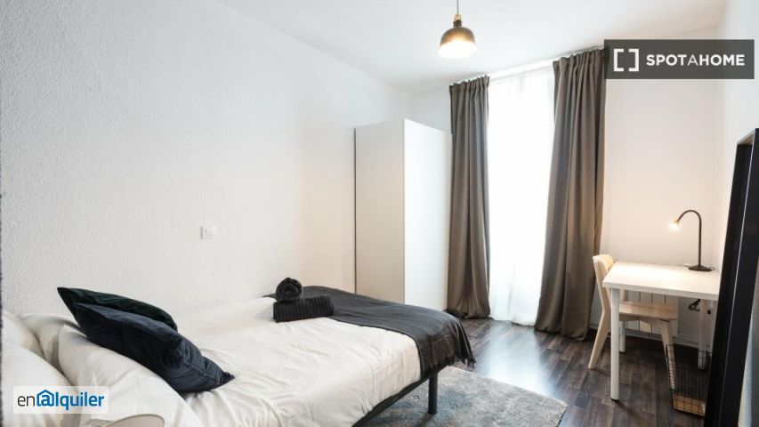 El edificio se encuentra en pleno centro de Madrid, a solo unos minutos a pie de Sol y Tirso de Molina. El apartamento presenta un diseño moderno con amplias habitaciones y una cocina excelente. El alquiler incluye todos los gastos, incluyendo facturas, internet, limpieza quincenal y mucho más. Piso: 5. ª planta