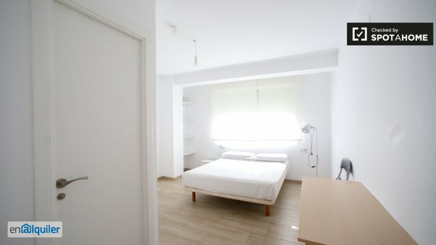 El minimalista ultramoderno _porque el estilo está en la sencillez. _ ¿me gustará este lugar? Creemos que sí. ¿sueñas con espacios habitables modernos, libres de desorden y combinaciones de colores disonantes? Si es así, este es el lugar para ti. ¿en serio? Cuéntame más te encantará el estilo moderno de este apartamento. Es minimalista y ordenado. Recibe mucha luz natural, lo que ayuda a crear un ambiente encantador. Creemos que este apartamento es ideal para estudiantes y profesionales. Céntrico y bien conectado, tendrás todo lo que necesitas aquí. ¿músico? El Berklee College of Music está cerca. Tus 3 razones principales para vivir aquí: - el interior moderno hace que este sea un lugar para recordar. - el Berklee College of Music está a unos 20 minutos a pie. Pero debes saber esto - Los dormitorios en sí no tienen unidades de calefacción ni aire acondicionado. Podría valer la pena invertir en un calentador portátil. Xavier, nuestro Homechecker, dijo: _“me encantó esta propiedad. Es muy moderna, con mucha luz natural y mucho espacio en las áreas compartidas”. _ Dímelo sin rodeos Este es un hermoso apartamento de 3 habitaciones en el primer piso en Carrer de Rodrigo de Pertegás, Valencia. Elige entre cualquiera de las 3 habitaciones modernas y disfruta de amplias áreas compartidas. Este apartamento es ideal tanto para estudiantes como para profesionales. Tienes fantásticas conexiones con la ciudad y puedes caminar fácilmente hasta el campus local.