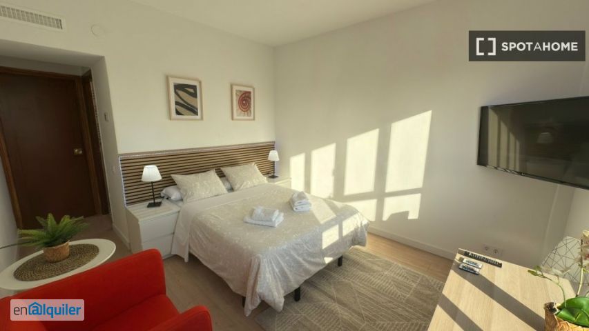 Se alquila estudio amueblado en la Calle Del Conde Duque. La propiedad incluye aire acondicionado.