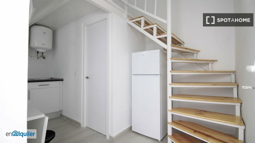 El deslumbrante dúplex _porque quiero un espacio moderno para llamar hogar ¿me gustará aquí? Sería difícil no hacerlo. ¿buscas algo elegante y minimalista, con un esquema de color que sea agradable a la vista? Este espacio elegante seguramente atraerá. ¿de Verdad? Dime más te encantará el estilo minimalista aquí. Este estudio está recién reformado, por lo que todo es nuevo y brillante. Disfruta de un esquema de color blanco nítido y una hermosa escalera de madera hasta tu acogedor loft. Creemos que es ideal si buscas un lugar relajado y disfrutas de un paseo por los frondosos parques. Relájate junto al lago en el Parque de Pradolongo, luego dirígete a tu cafetería o restaurante favorito. Sus 3 razones principales para vivir aquí: - Este apartamento está reformado y súper elegante. - Hay una unidad de aire acondicionado para calentar y enfriar la sala de estar y el desván. - Estás cerca de hermosos parques y de todas las tiendas que necesitas. Pero necesitas saber esto - la lavadora y la secadora se encuentran en una lavandería común, y cada una cuesta 3 € por uso. - la cocina no tiene horno ni lavavajillas: aspirantes a chefs, este podría no ser el lugar. Y esto - Las renovaciones acababan de terminar cuando fuimos de visita, y todavía estaban agregando muebles. Parece un poco vacío, pero tendrá todo lo que necesita cuando llegue. Su inspector de viviendas, Marcos, dijo: _ “me encantó esta propiedad. Está recién reformado y todo es nuevo. Esta es una zona agradable, con un metro a solo 12 minutos a pie. "_ Ayúdame a decidir Este es un moderno estudio en la calle de Santoña, Madrid. Cuenta con un interior recientemente renovado con una acogedora zona de dormitorio a nivel de loft y aire acondicionado para mantener cómodo todo el apartamento. Esta propiedad es ideal si está buscando un vecindario relajado, con todo a una corta distancia a pie. Además, te encantará tomar un poco de aire fresco en el hermoso Parque de Pradolongo.