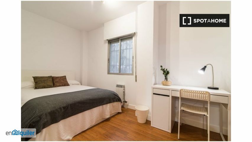 Se alquilan habitaciones en piso amueblado de 6 habitaciones en Calle de Téllez. La propiedad se encuentra en el 1Er piso de un edificio con ascensor. Situado en Madrid, en un barrio muy animado. Fácil acceso al transporte público. Metro línea 3 y 6: Menéndez Pelayo Pacífico. Cerca de supermercados, restaurantes y la estación de tren de Atocha. A 10 minutos del parque del Retiro. El apartamento está completamente amueblado y es moderno.