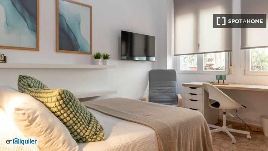 ¿buscas habitación en el centro de Madrid? Esta es tu oportunidad de alquilar una habitación en un piso compartido de 6 habitaciones en Embajadores. La habitación está completamente amueblada y cuenta con balcón, lavadora común y cocina equipada para tu comodidad. No se permite fumar ni se admiten mascotas, y es perfecto tanto para profesionales como para estudiantes, incluyendo estudiantes Erasmus. El servicio de limpieza periódica tiene un coste adicional. Embajadores es un barrio vibrante de Madrid, cerca de muchas atracciones. Encontrarás lugares turísticos como la Estatua de Eloy Gonzalo y la Plaza de Cascorro a poca distancia. Otros lugares cercanos incluyen la Calle de Lavapiés, el Rastro y el Convento de la Latina, que añaden encanto al ambiente dinámico de la zona. Disfruta de vivir en esta animada zona con fácil acceso a opciones de ocio y lugares de interés cultural.