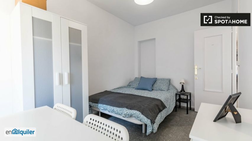 El encantador del noveno piso _porque quiero vibraciones elegantes en el campus_ ¿me gustará aquí? Eso depende. ¿eres un ratón de biblioteca amante de la fiesta y buscas diversión con tus viejos compañeros de piso cerca de una de las universidades más prestigiosas de Valencia? Estás de suerte, este podría ser perfecto para ti. ¿de Verdad? Dime más te encantará la cocina. Aquí, puede canalizar a su maestro de cocina interno e impresionar a todos con sus vuelos culinarios de fantasía. Quédate por la sobremesa y comparte historias con tus compañeros de piso. Creemos que es ideal para personas responsables. ¿cansado de viajar? El apartamento se encuentra dentro del campus Blasco Ibañez de la Universidad de Valencia. Ahora ya no tienes excusas para llegar tarde a clase. Sus 3 razones principales para vivir aquí: - Esa cocina está llamando a un verdadero cocinero. - la decoración minimalista. Todo lo que necesitas, nada que no necesites. - Vivirás dentro del campus Blasco Ibañez de la Universidad de Valencia. Pero necesitas saber esto - no hay aire acondicionado ni calefacción: tiempo para invertir en un ventilador y un par de calcetines de lana. - Solo se puede acceder al balcón a través del dormitorio 1. Ayúdame a decidir Este es un encantador apartamento de 5 dormitorios en el noveno piso en Carrer Del Riu Ebre, Valencia. Tiene una cocina espaciosa, una decoración encantadora, y está dentro del campus Blasco Ibañez de la Universidad de Valencia. Este apartamento es perfecto para jóvenes extrovertidos. Además de estar cerca de la escuela, estarás justo al lado de Av. De Blasco Ibáñez, uno de los principales centros de fiestas de la ciudad. Explora la vibrante vida nocturna de Valencia con la ayuda de tus 4 nuevos compañeros de piso.